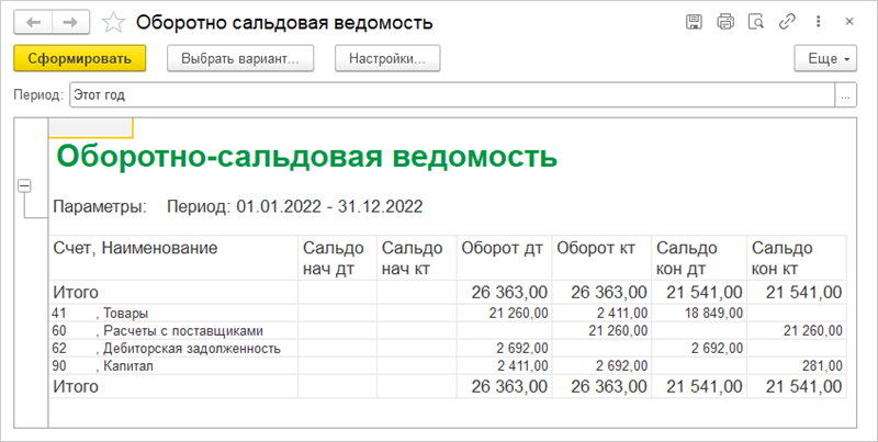 Единственный отчет, которым пользуется бухгалтерия вашего предприятия, – это отчет Оборотно-сальдовая ведомость (рис. 17.18).