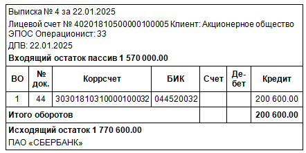 Согласно «Договору № 2-ПК от 17.01.2025» на расчетный счет АО ЭПОС получена предоплата от КБ «Топ-Инвест» в счет предстоящей поставки продукции — письменных столов.