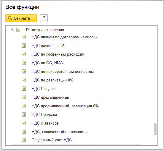 Рис. 1.15. Регистры подсистемы учета расчетов по НДС