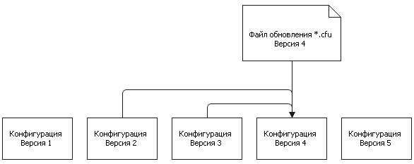 Файл обновления представляет собой специальный файл *.cfu, формируемый также в информационной базе разработчика. Назначение файла обновления состоит лишь в том, чтобы выполнить обновление с некоторых определенных версий конфигурации до версии файла обновления (рис. 1.43).