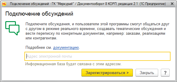 В программу встроены Обсуждения. С них пользователи могут общаться друг с другом в режиме реального времени, создавать тематические обсуждения и вести переписку по конкретным документам, контрагентам и т.д.