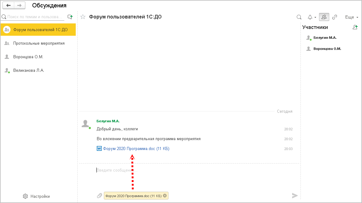 В любой момент к уже начатому обсуждению можно подключить новых участников.