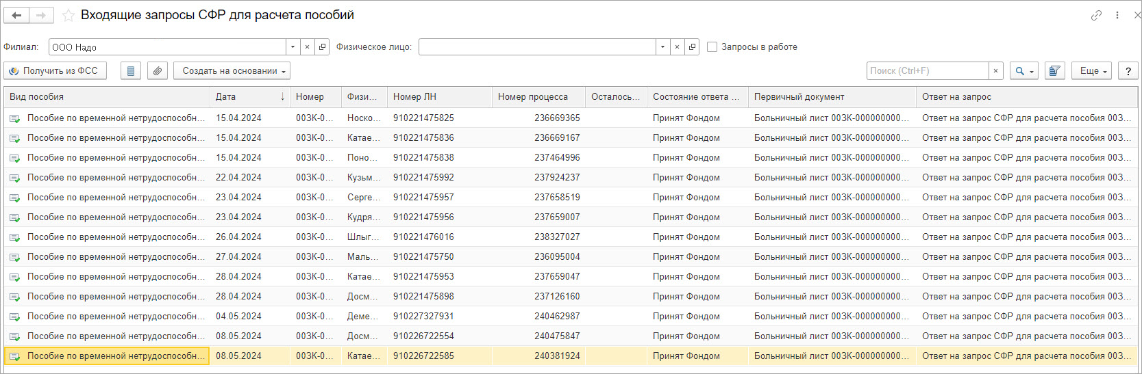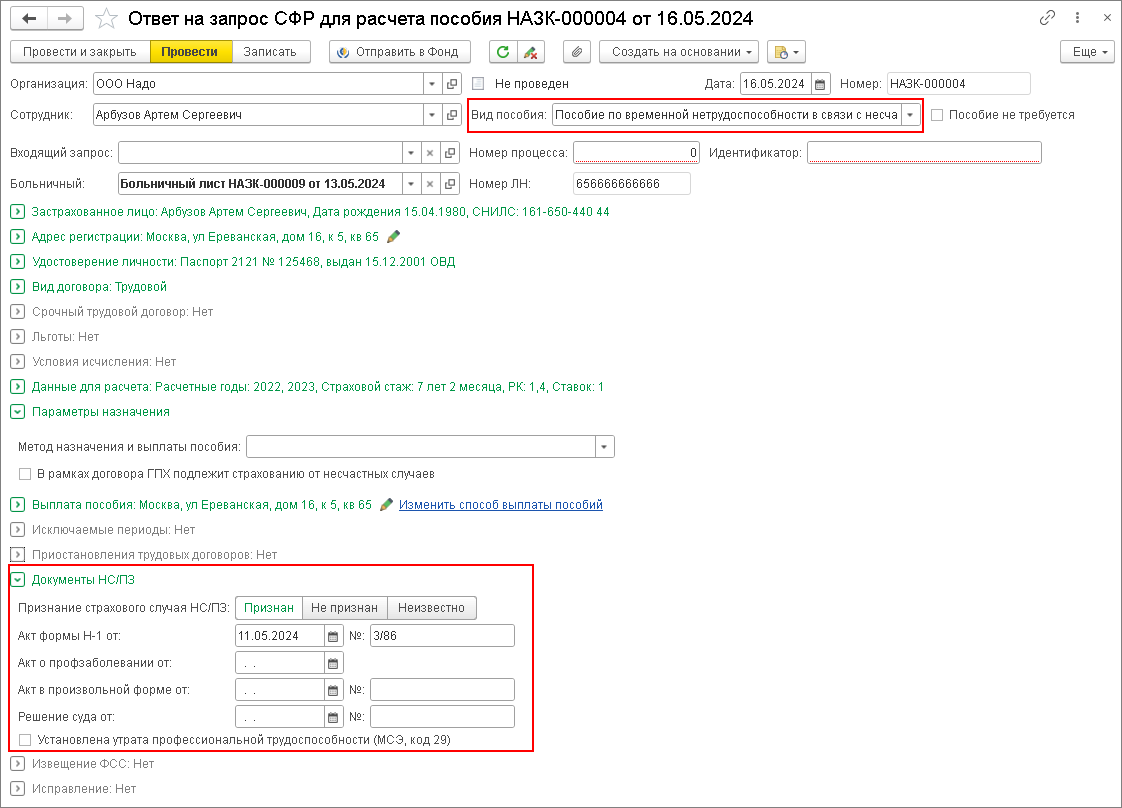 - Через некоторое время фонд пришлет опять входящий запрос о предоставлении сведений. Обратите внимание на вид пособия в запросе. Он должен быть Пособие по временной нетрудоспособности в связи с несчастным случаем на производстве и профессиональным заболеванием. Если вид пособия не изменился, это значит, что сведения о расследовании страхового случая не попали в базу СФР. В таком случае необходимо связаться с региональным фондом СФР и уточнить статус страхового случая.