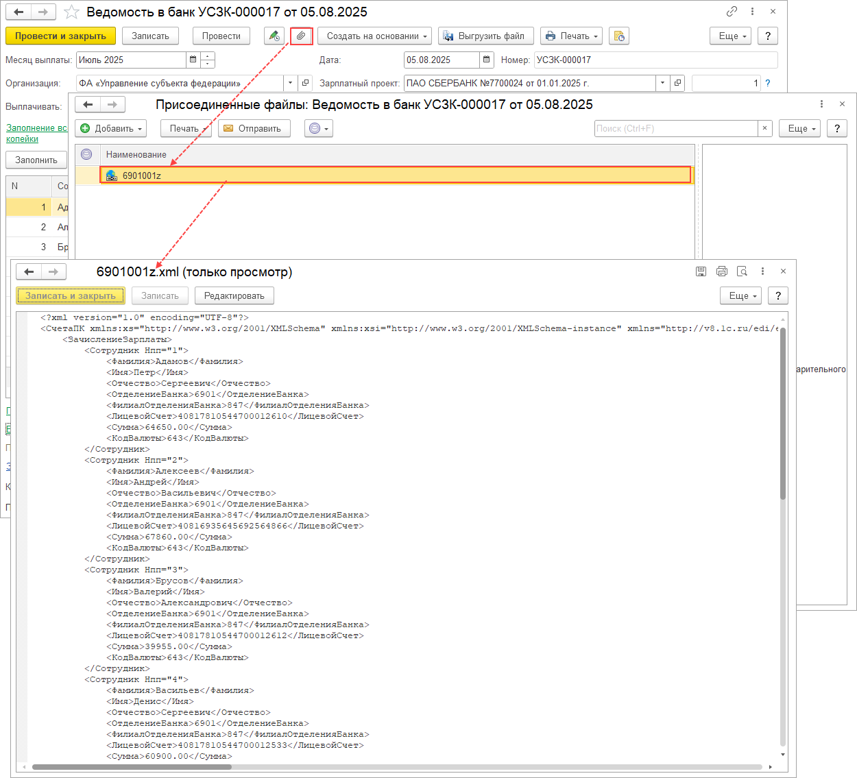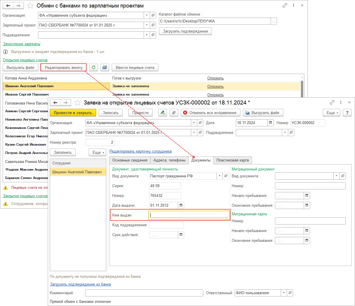 - Работа по обмену с банком с использованием обработки "Обмен с банками по зарплатным проектам".