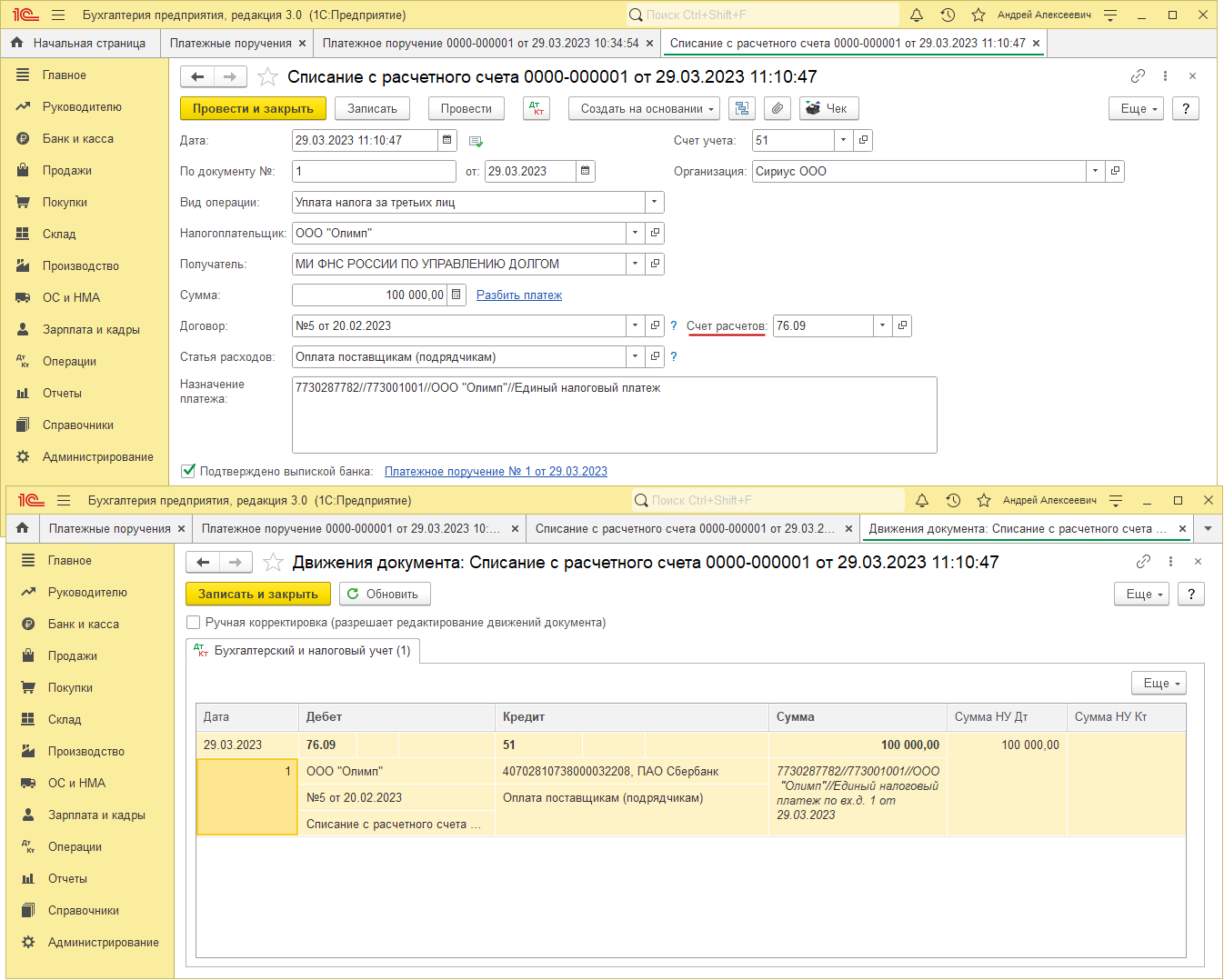 документа "Списание с расчетного счета" (рис. 3). В проводке по