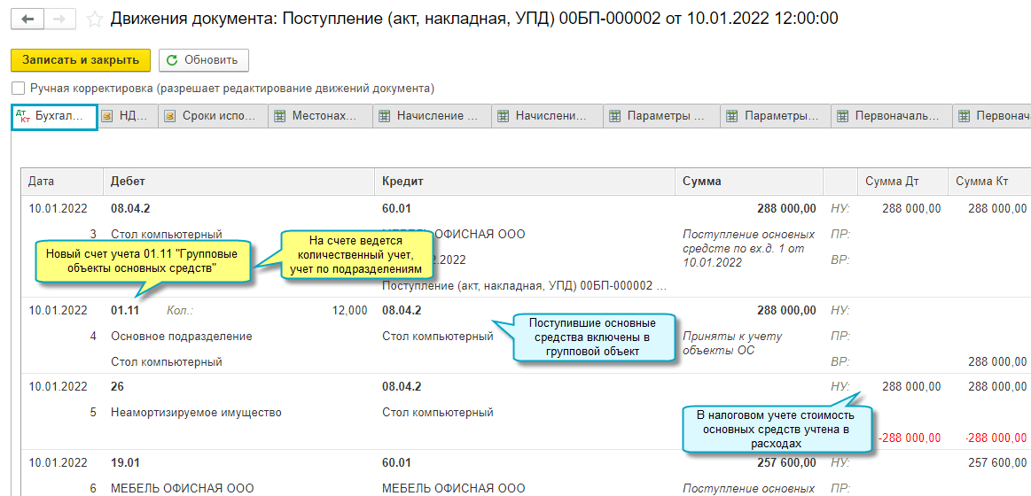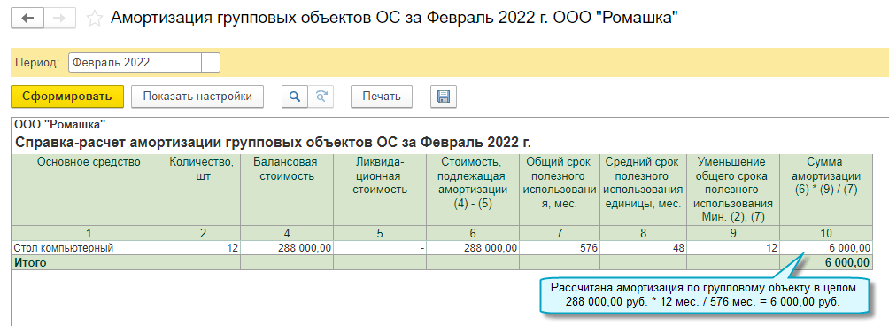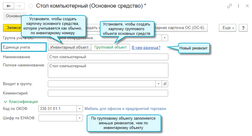 Подробнее о групповом учете основных средств см. в Статье.