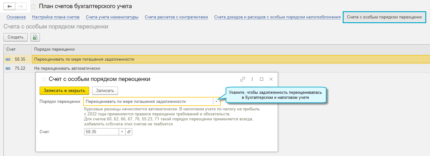 Добавлена возможность переоценивать требования и обязательства, учитываемые на счетах с особым порядком переоценки, по мере их погашения. Задолженность переоценивается в бухгалтерском учете согласно ПБУ 3/2006 "Учет активов и обязательств, стоимость которых выражена в иностранной валюте", в налоговом учете - Федеральному закону от 26.03.2022 № 67-ФЗ.