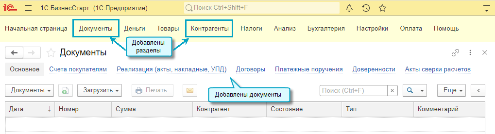 Функционал доступен для пользователей простого интерфейса, которые не ведут учет расчетов с покупателями и поставщиками по документам.
