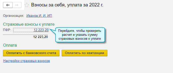 Простой интерфейс: меню "Настройки - Настройка налогов и отчетов - Страховые взносы (ИП)".
