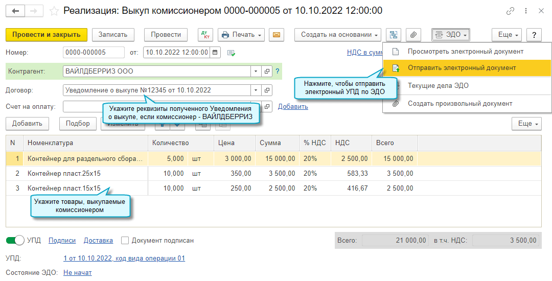 Добавлена возможность загрузки данных в документ Возврат товара из электронного УПД, поступившего от комиссионера по ЭДО.