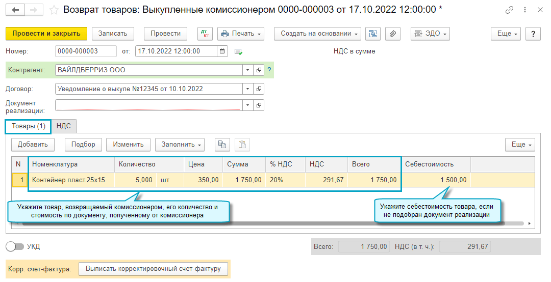 Добавлена возможность отражать выкуп комиссионером переданных ему на реализацию товаров и возврат этих выкупленных товаров.