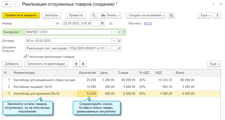 Добавлена возможность отражать частичную реализацию товаров, отгруженных без перехода права собственности.