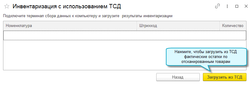 С помощью ТСД отсканируйте штрихкоды фактических остатов товаров.