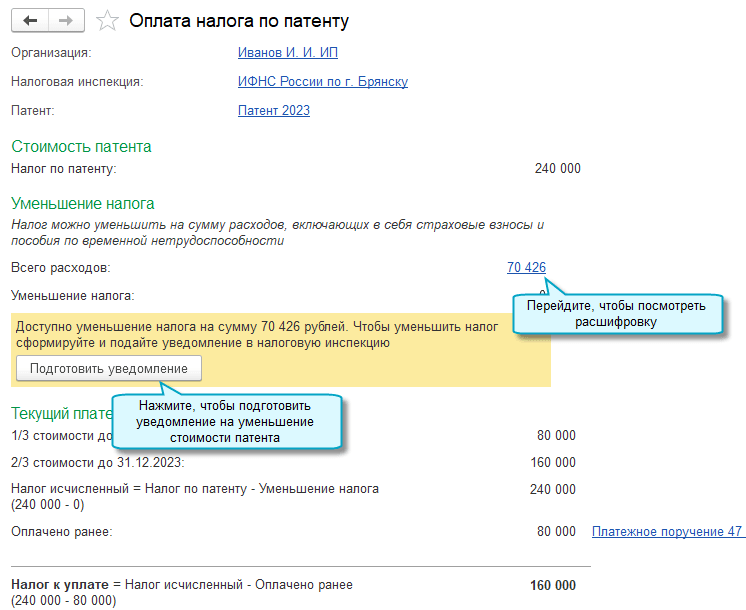 Скорректирован расчет суммы страховых взносов, уменьшающих стоимость патента, в связи с тем, что с 01.01.2023 страховые взносы по единому тарифу с зарплаты сотрудников и страховые взносы ИП за себя перечисляются по реквизитам единого налогового платежа (ЕНП) на единый налоговый счет.