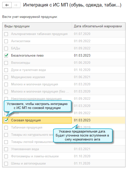 Добавлена возможность интеграции с Информационной системой маркировки и мониторинга (ИС МП) оборота следующих видов продукции: