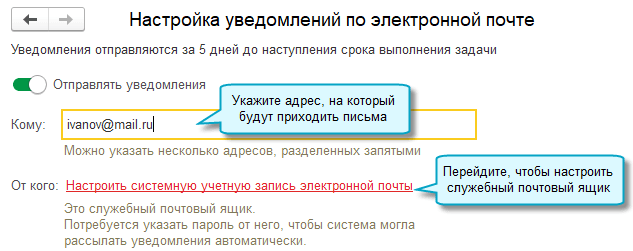 Для получения уведомлений выполните следующую настройку: