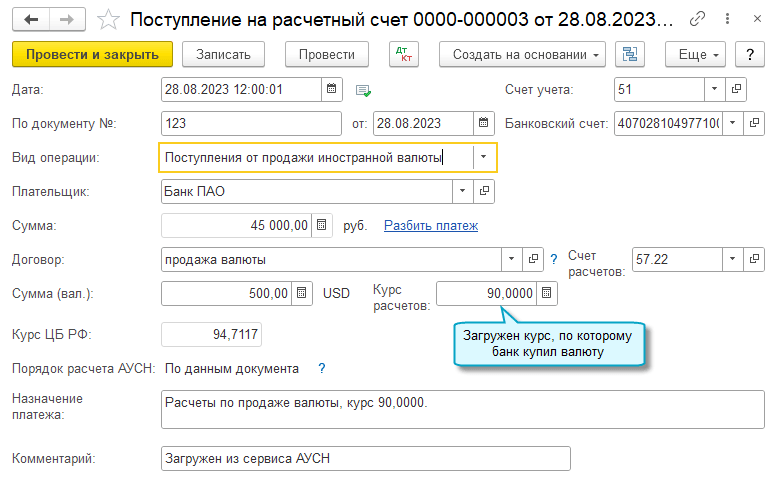 Добавлена загрузка курсов покупки и продажи валюты через сервис АУСН, когда они указываются банком.