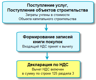 Заполняется строка 125 суммами НДС, предъявленными подрядчиками по выполненным работам при проведении капитального строительства.