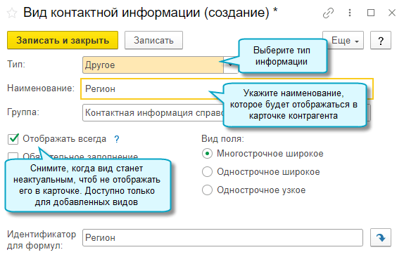 Добавлена возможность настроить состав контактной информации сразу из карточки контрагента. Сделать это может только пользователь с правами администратора.