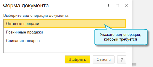 После изменения вида операции, откройте документ и дозаполните его.