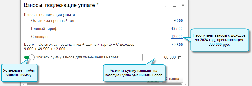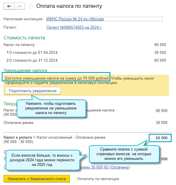 На остаток взносов с доходов 2024 г. в сумме 10 500 руб. можно будет уменьшить стоимость патента в 2025 году.
