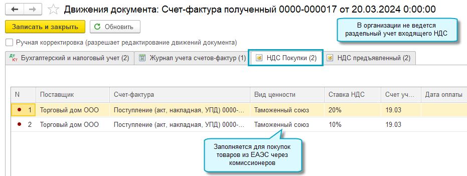 Добавлена возможность организациям и ИП заполнить журнал учета счетов-фактур, когда они по договорам комиссии закупают и ввозят товары из стран ЕАЭС для комитентов - российских организаций или ИП (Письмо ФНС России от 04.04.2024 № СД-4-3/3936@, см. подробнее).