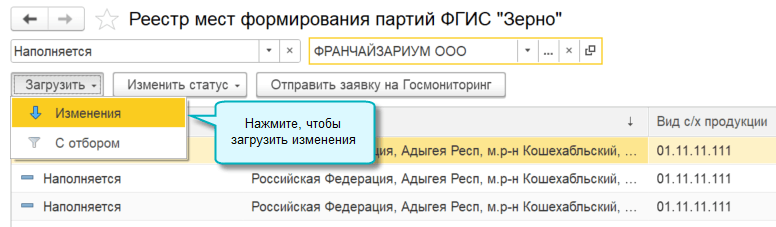 Дата последнего загруженного изменения из ФГИС "Зерно" теперь сохраняется в новом регистре Синхронизация данных. При последующем запуске задания по загрузке данных из ФГИС "Зерно" будут загружаться данные от сохраненной даты.