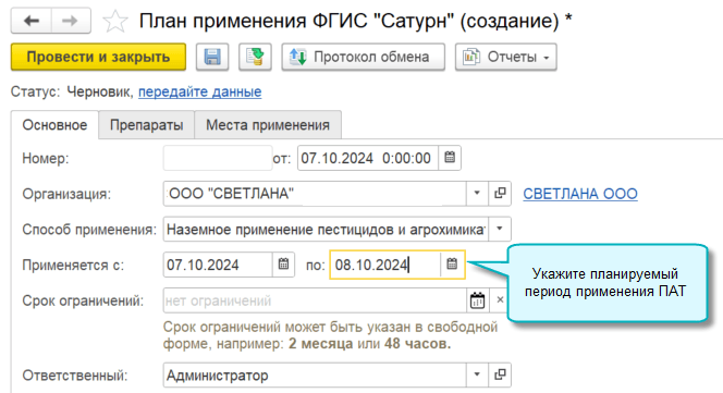 В документе План применения ФГИС "Сатурн" теперь указывается не срок, а период применения ПАТ.