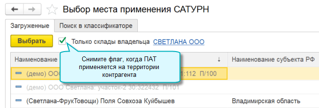 В качестве места применения ПАТ теперь можно указывать территорию контрагента.