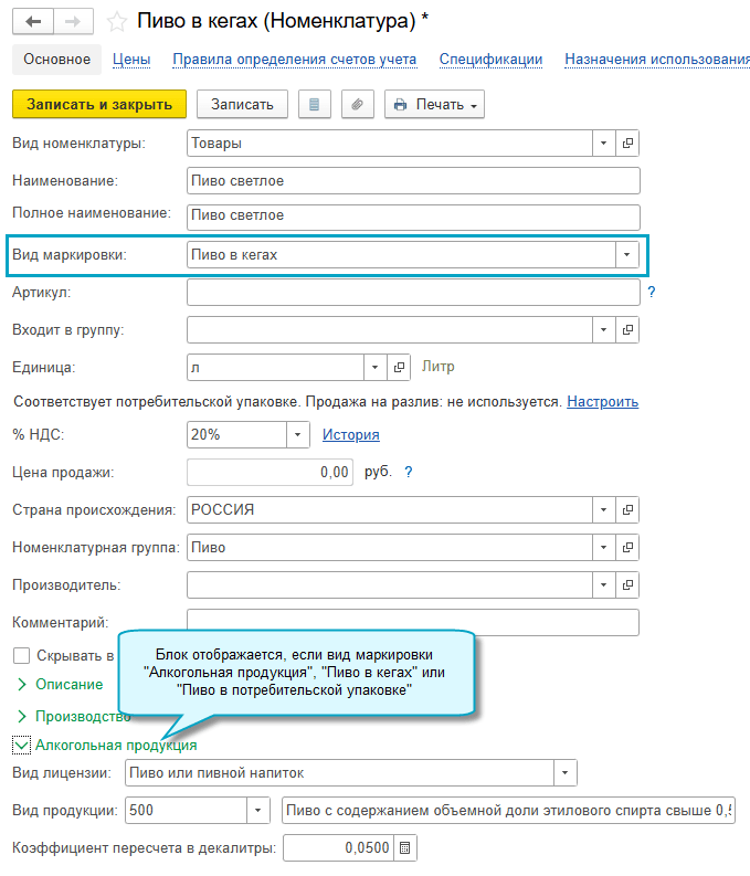 Добавлена возможность продажи на разлив для товарной группы Безалкогольное пиво. Подробнее о продаже на разлив на примере пива см. здесь.