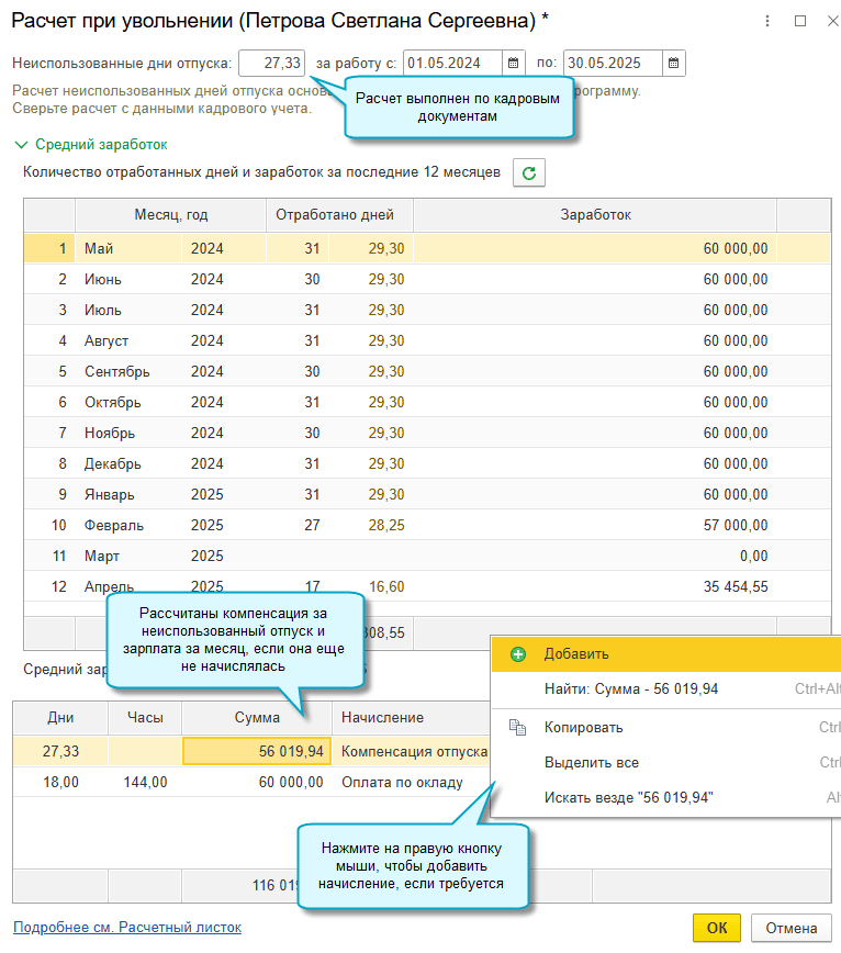 Теперь при увольнении сотрудника рассчитывается и начисляется компенсация за неиспользованный отпуск и зарплата за последний месяц.