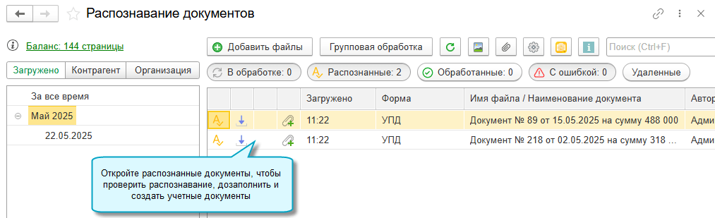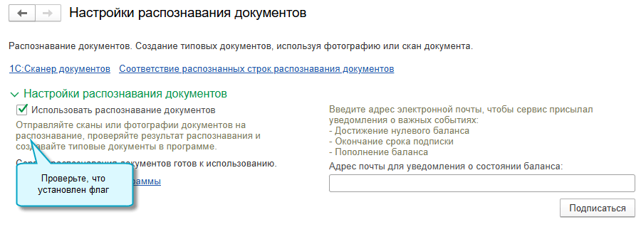 Распознавание документов через сервис 1С:РПД предоставляется по подписке за дополнительную плату. Подробнее о сервисе см. здесь.