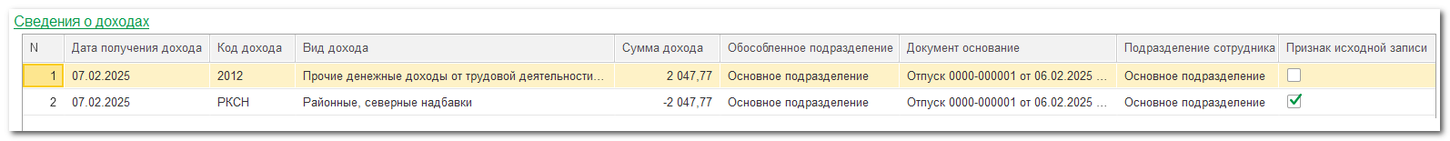 Доход по базе "Районные, северные надбавки" был получен 07.02.2025.