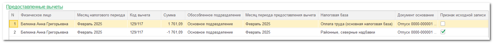 - По базе "Районные, северные надбавки" вычет предоставлен в размере 1 761,09 руб. Исчисленный налог составил 37 руб.