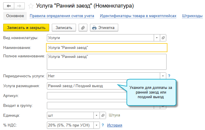1. добавить услуги по раннему заезду и позднему выезду в справочник Номенклатура