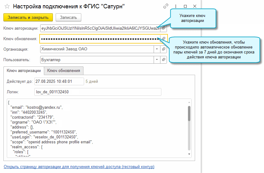 Изменена настройка подключения к ФГИС "Сатурн". Теперь авторизация во ФГИС "Сатурн" выполняется через ЕСИА (Госуслуги).