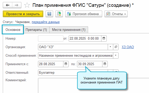В плане применения теперь требуется обязательно указывать плановую дату окончания применения ПАТ, добавлены сроки выхода для ручных и механизированных работ.