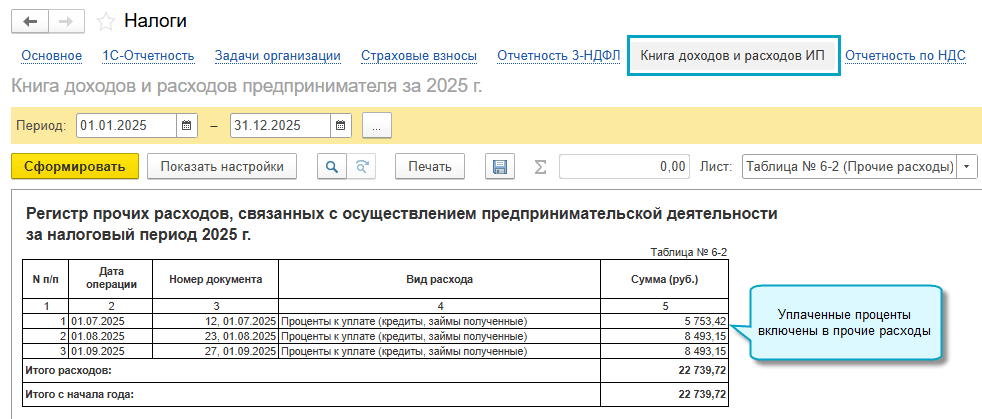 Добавлена возможность учитывать в расходах ИП по НДФЛ проценты по полученным займам и кредитам.