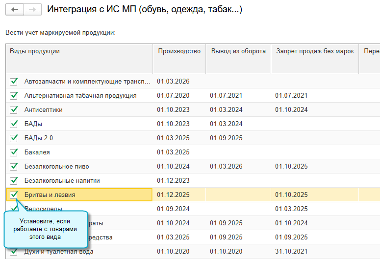 Добавлена возможность интеграции с ГИС МТ "Честный знак" по обороту следующих видов маркируемой продукции: