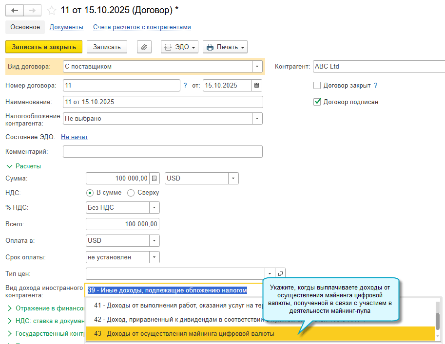 Добавлен код дохода 43 "Доходы от осуществления майнинга цифровой валюты, полученной в связи с участием в деятельности майнинг-пула". Раньше для таких доходов иностранных организаций использовался код 39.