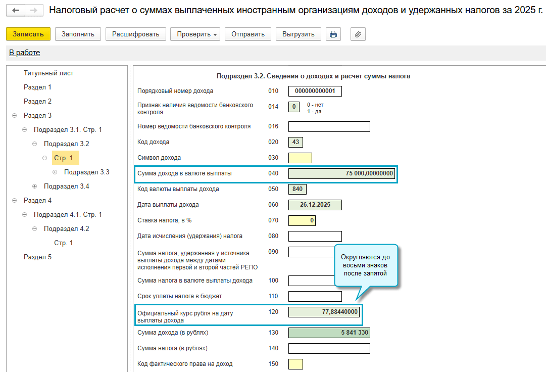 Изменения вступают в силу 01.01.2026 и применяются начиная с представления налогового расчета сумм доходов, выплаченных иностранным организациям, и сумм удержанных налогов за 2025 год (Приказ ФНС от 12.09.2025 № ЕД-7-3/781@).