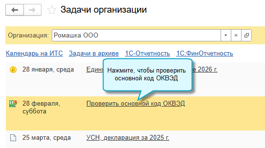 Если сервис 1С-Отчетность не подключен, измените самостоятельно код ОКВЭД в карточке организации после изменения данных в ЕГРЮЛ или ЕГРИП.