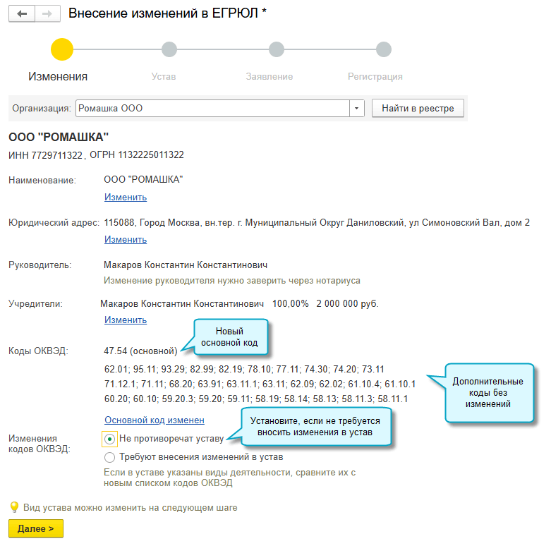 Добавлена возможность подготовить документы, если требуется изменить основной код ОКВЭД в ЕГРЮЛ или ЕГРИП.