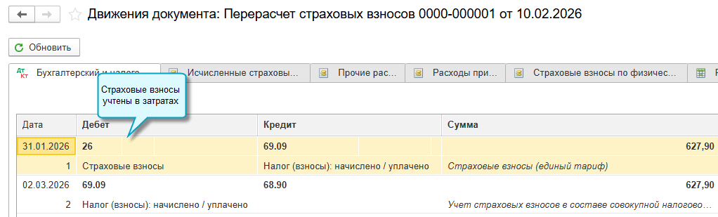 Полный интерфейс: меню "Зарплата и кадры - Страховые взносы - Перерасчеты страховых взносов".