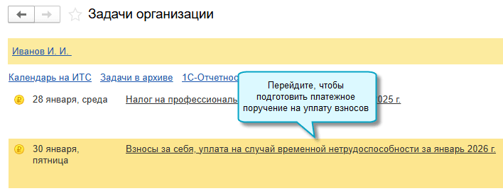 Простой интерфейс: меню "Организация - Налоги и отчеты - Страховые взносы (ИП)".