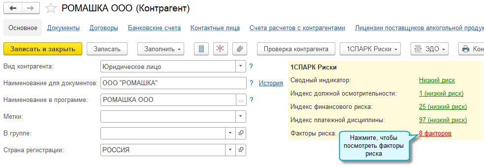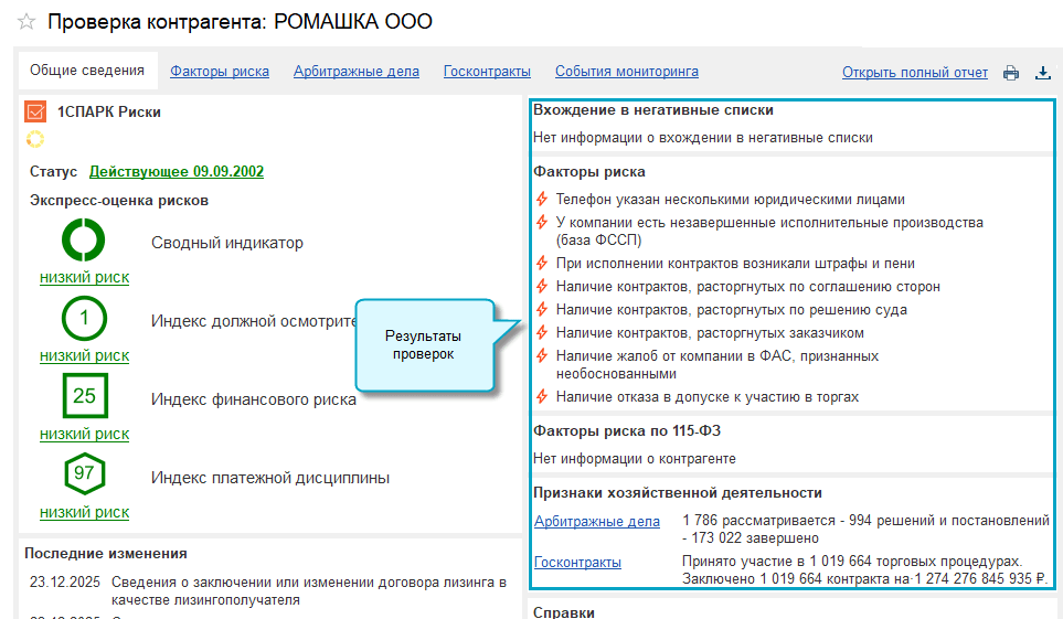 Добавлено более 150 проверок контрагентов в сервис 1СПАРК Риски: