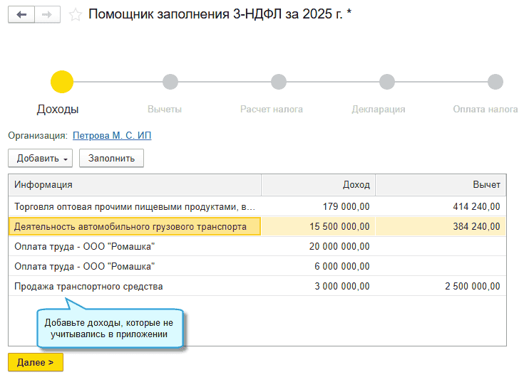 Добавлена возможность заполнить декларацию 3-НДФЛ через помощник. Форма применяется с 01.01.2026 начиная с декларации за 2025 год (Приказ ФНС России от 20.10.2025 № ЕД-7-11/913@).