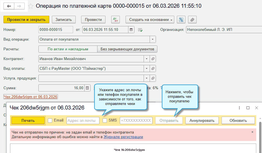 Добавлена возможность самозанятым автоматически регистрировать доходы в сервисе ФНС Мой налог. Чек автоматически формируется в сервисе Мой налог и отправляется покупателю при получении от покупателя оплаты по счету через СБП или ЮKassa. В других случаях чек не формируется автоматически.