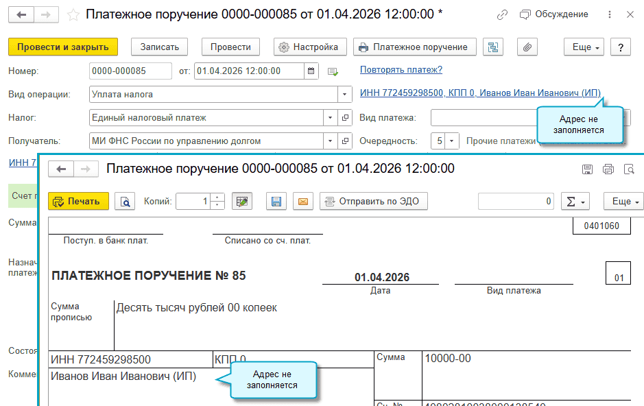 В платежном поручении индивидуального предпринимателя теперь не заполняется его адрес.