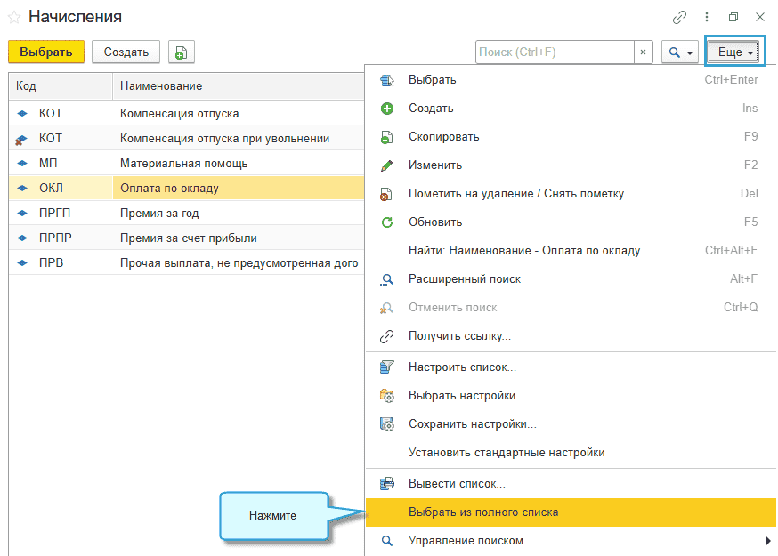 Полный интерфейс: меню "Главное - Настройки - Учетная политика".